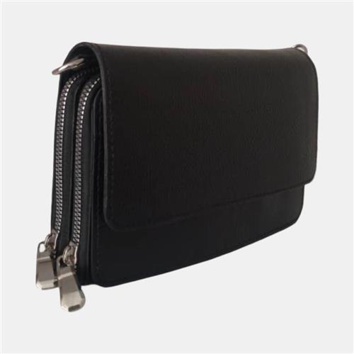 کیف دستی و دوشی زنانه همراه با بند بلند تمام چرم مشکی فلوتر طول ۱۸ ارتفاع ۱۴ عرض ۸