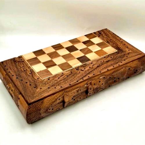 تخته چوب گردو دو کنده کاری پشت شطرنج