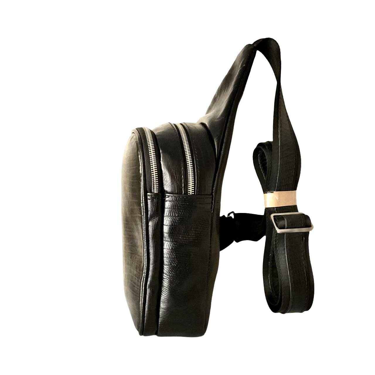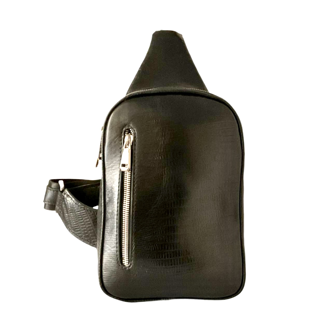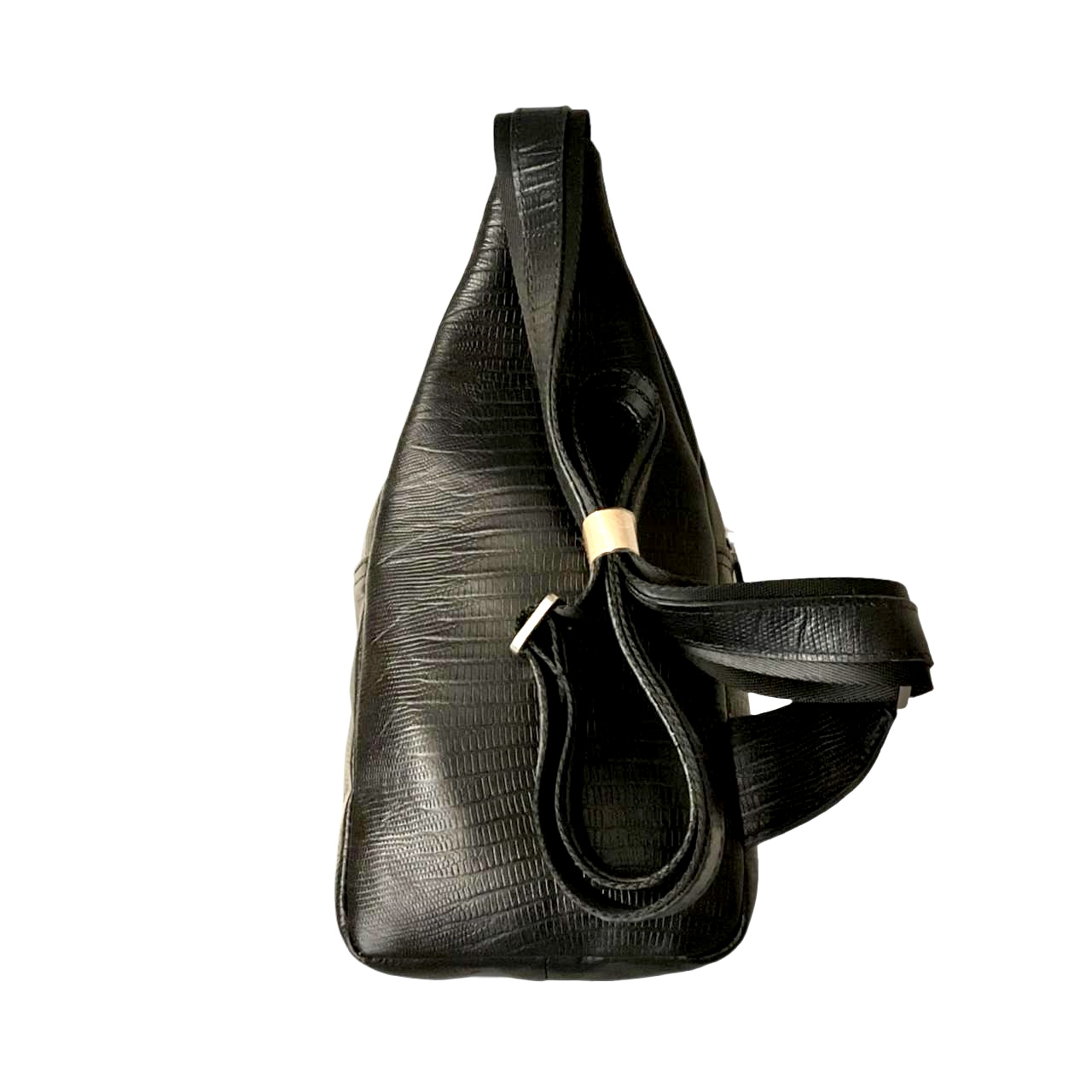 کیف دوشی تمام چرم گاوی بادی بگ طرح لیزارد مشکی طول ۳۳ ارتفاع ۱۷ عرض ۷