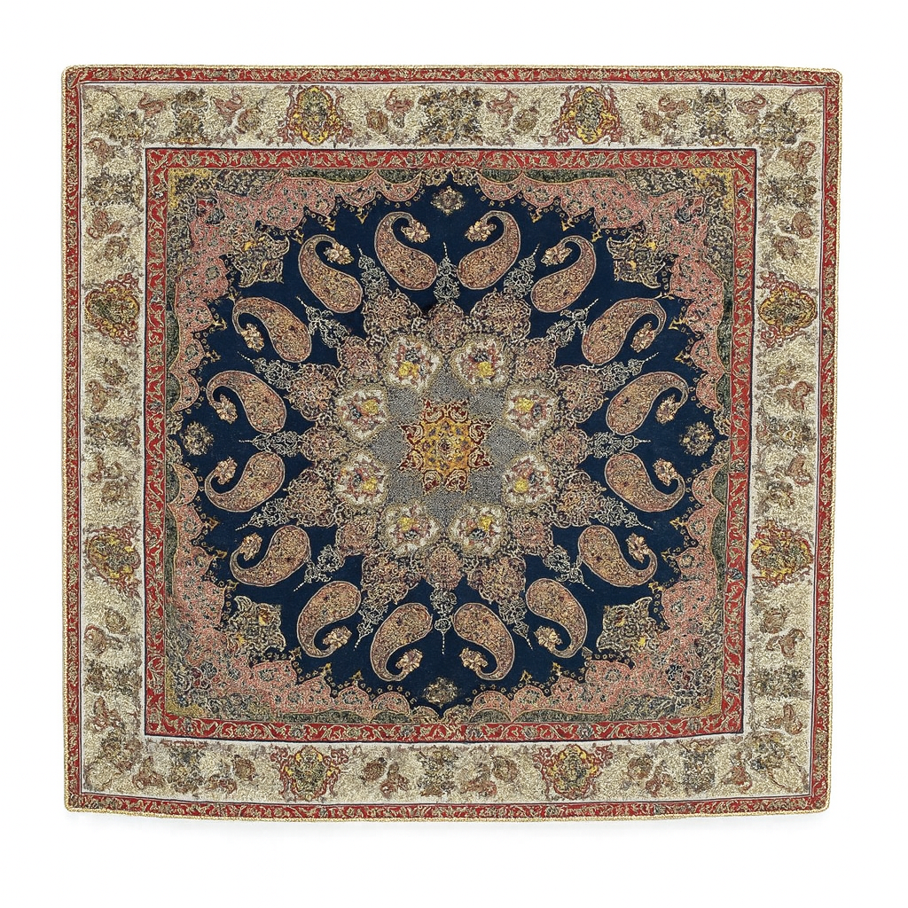 ترمه طرح باغ بهشت , زمینه ی سرمه ای , ابعاد یک متر در یک متر