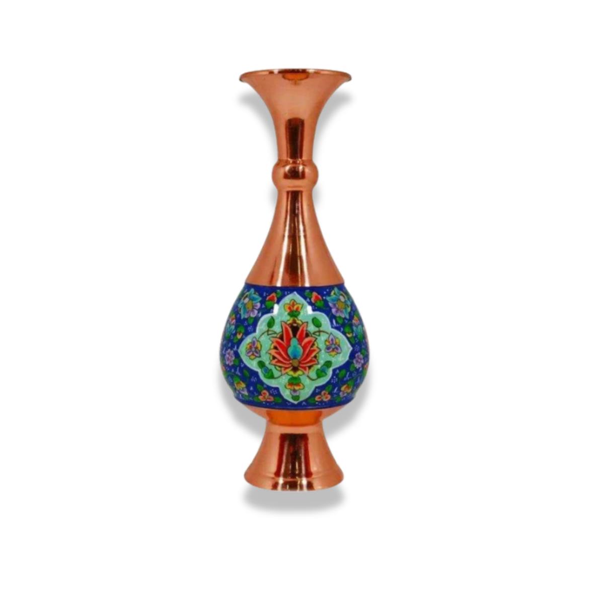 گلدان پرداز ۲۵ سانتی دیار برای کسانی ساخته شده که عاشق رنگ، نقش و هنر دستی هستند. طرحهای گلوبوته و رنگآمیزی زندهای که روی بدنه مسی اجرا شده، روح ایرانی را با لطافتی خاص در فضا جاری میکند.